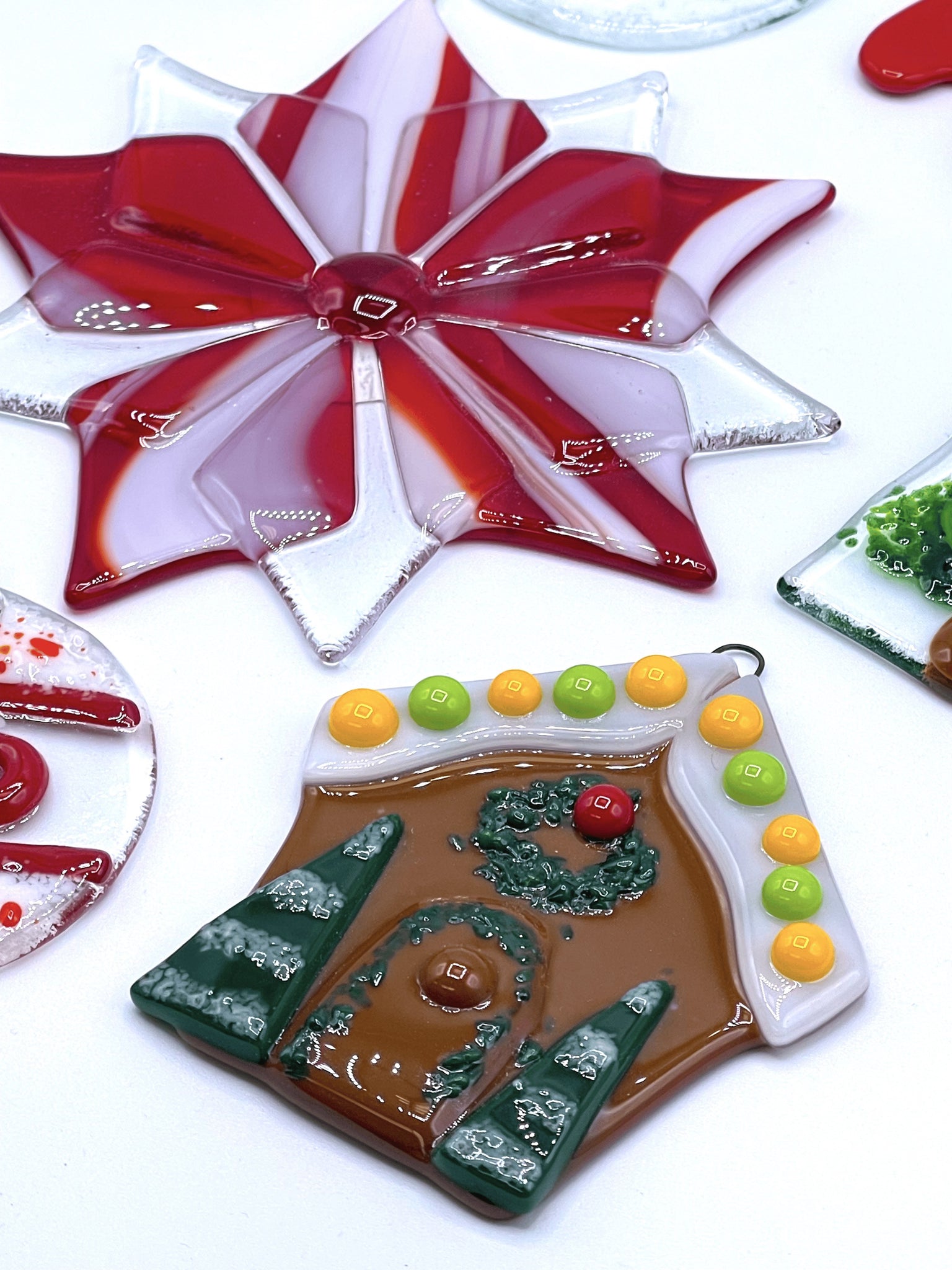 Join us for a festive workshop and make 4 fused glass Christmas ornaments. You can choose your designs from the samples provided. If you would like to make an extra ornament, you may do so at an extra cost.